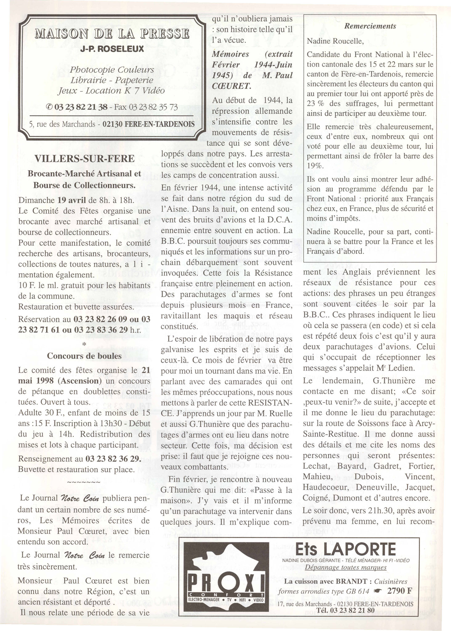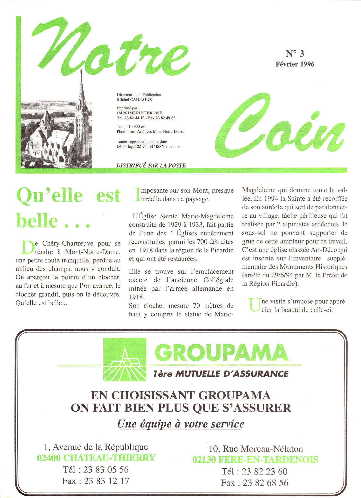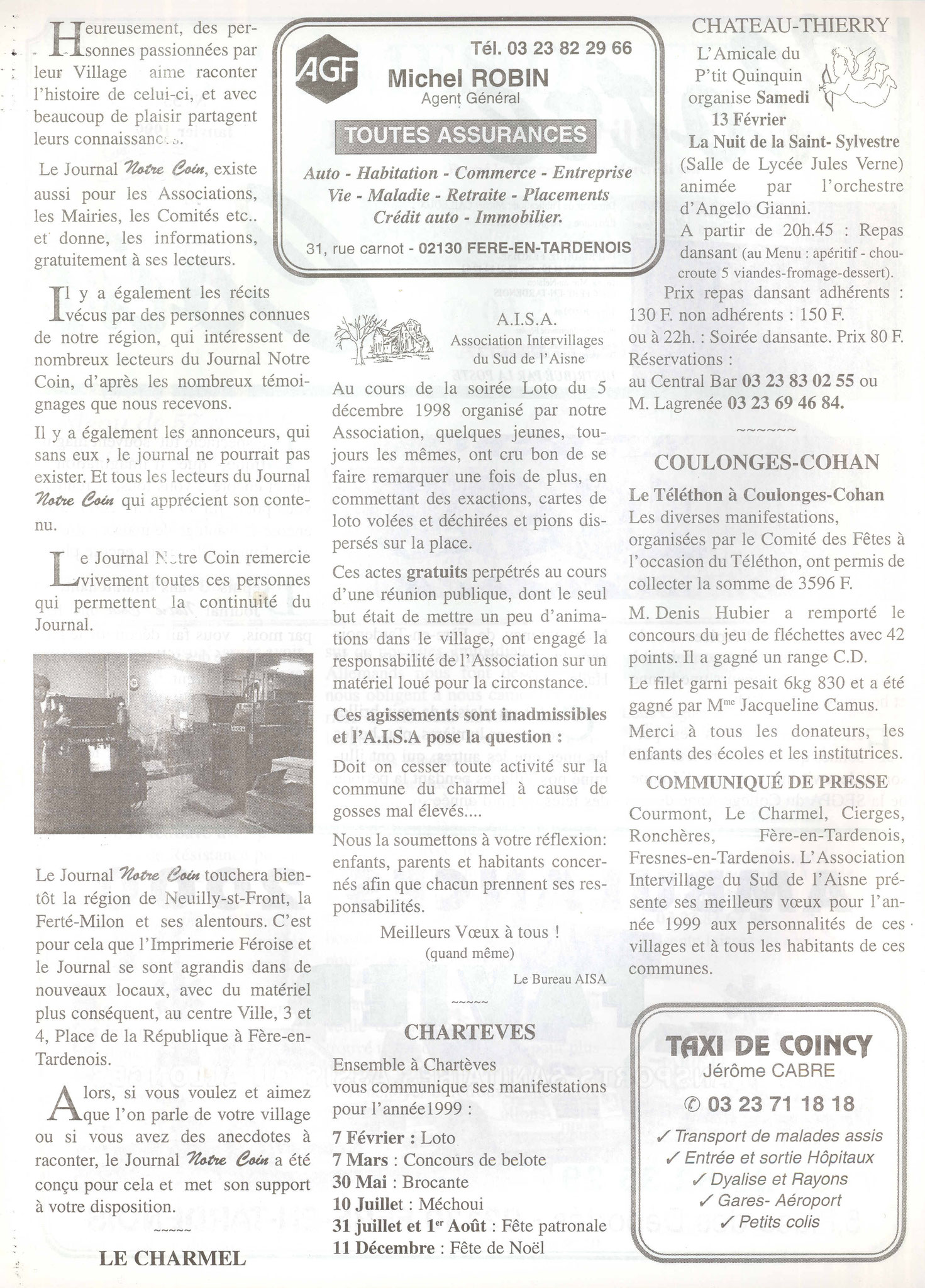 Un grand merci à Michel et Jacqueline CAILLOUX pour leur travail effectué à la diffusion du journal Notre Coin,