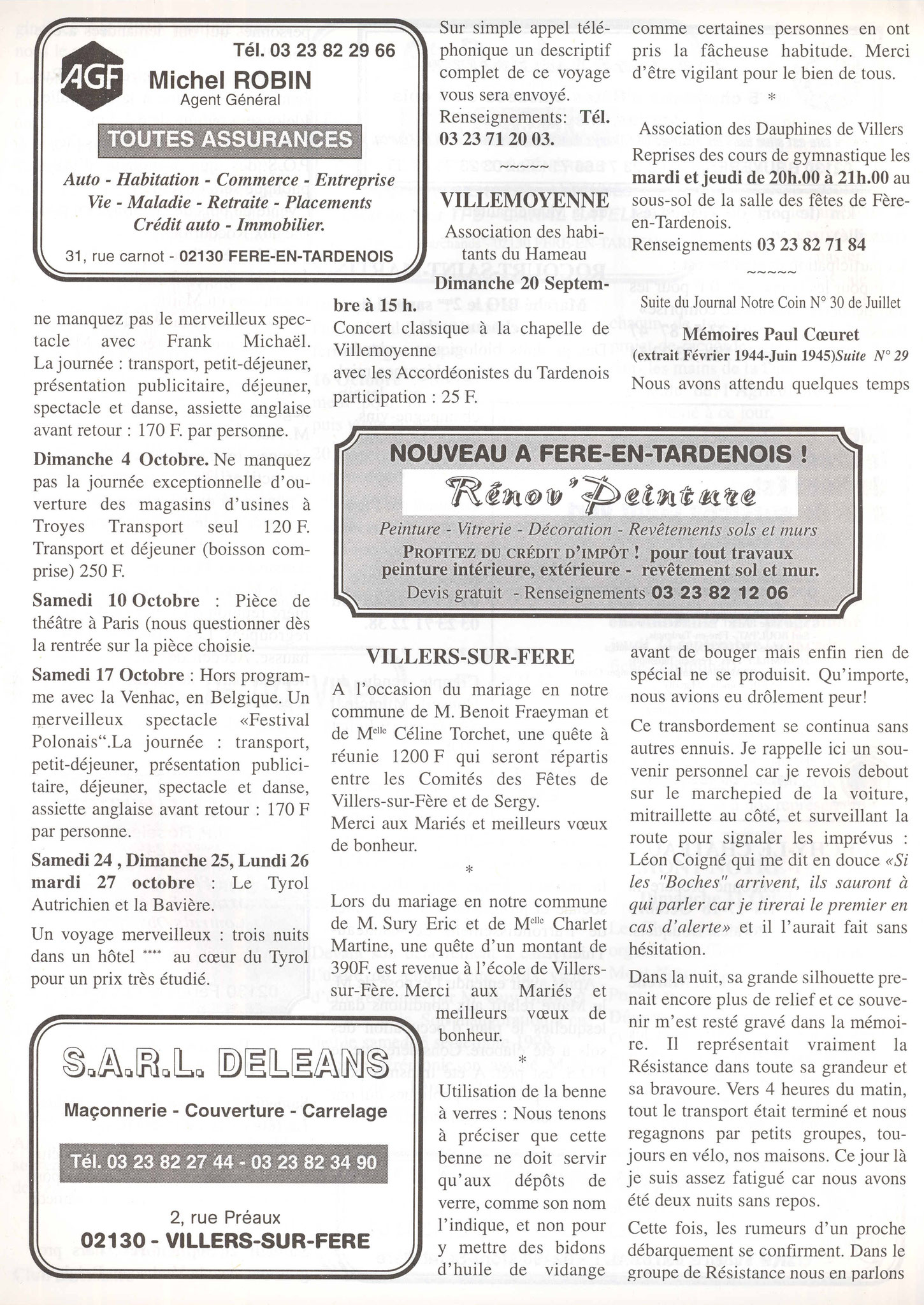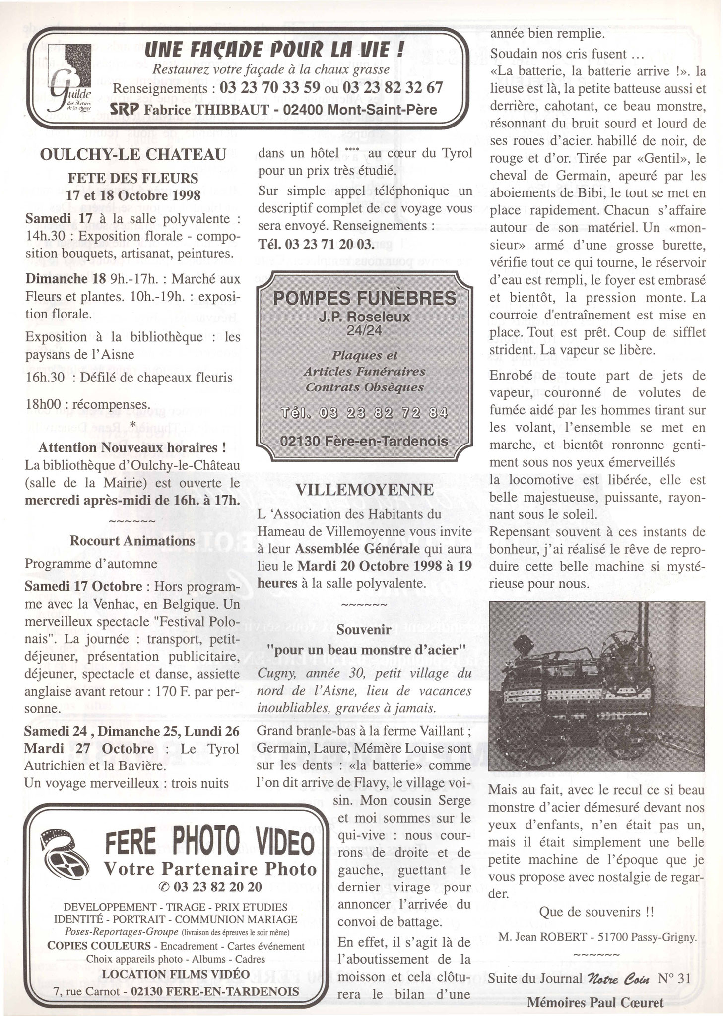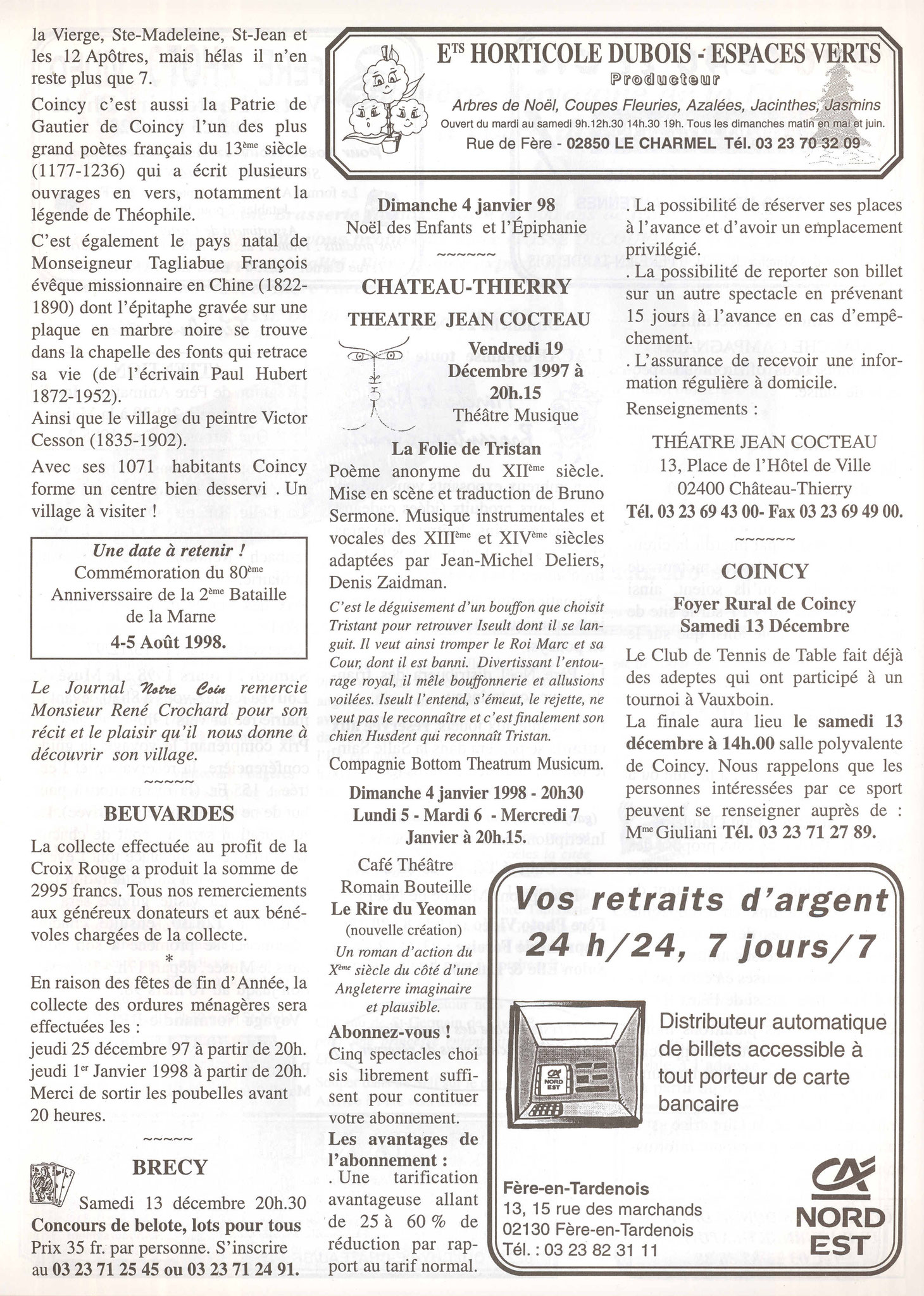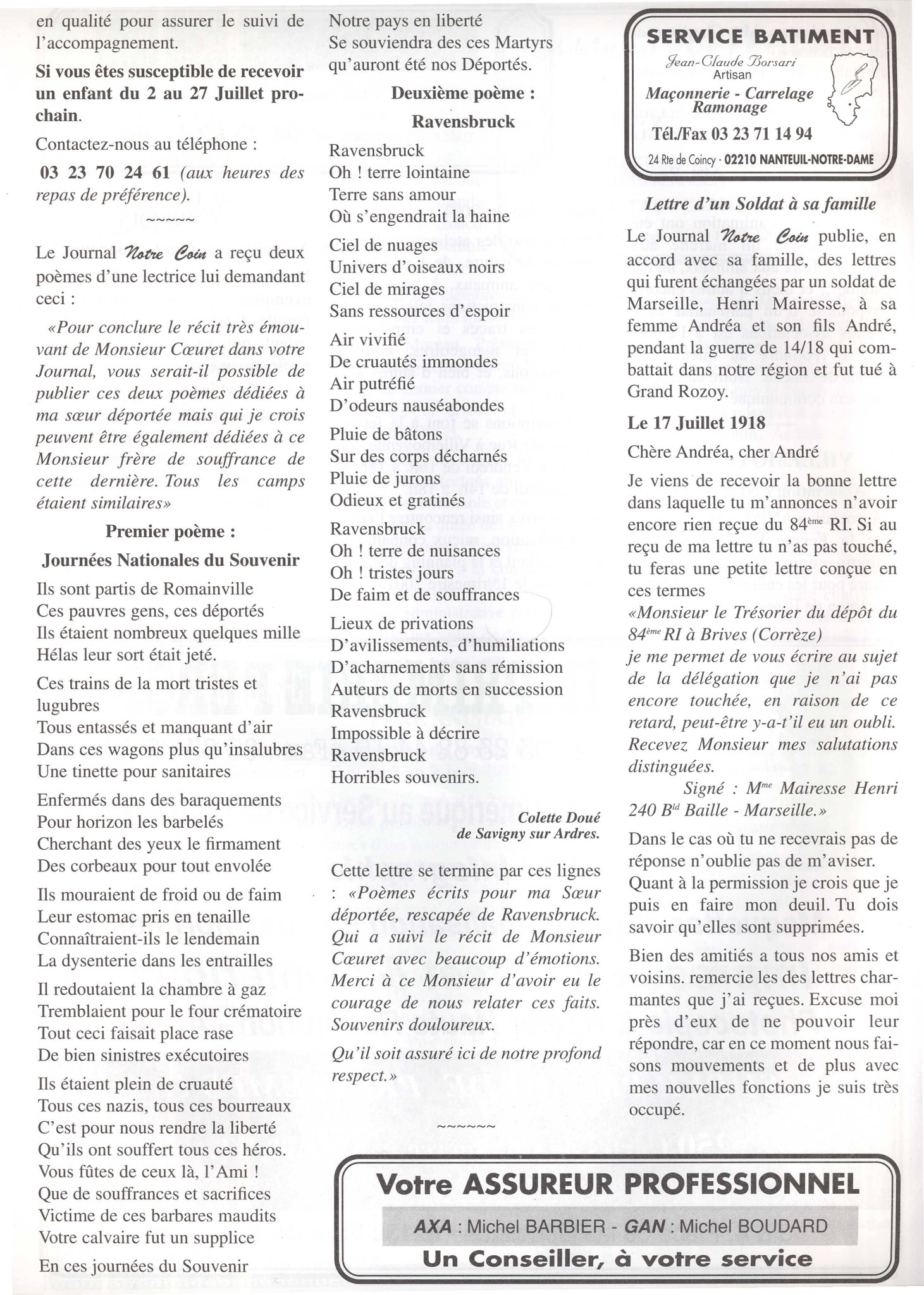 Un grand merci à Michel et Jacqueline CAILLOUX pour leur travail effectué à la diffusion du journal Notre Coin,